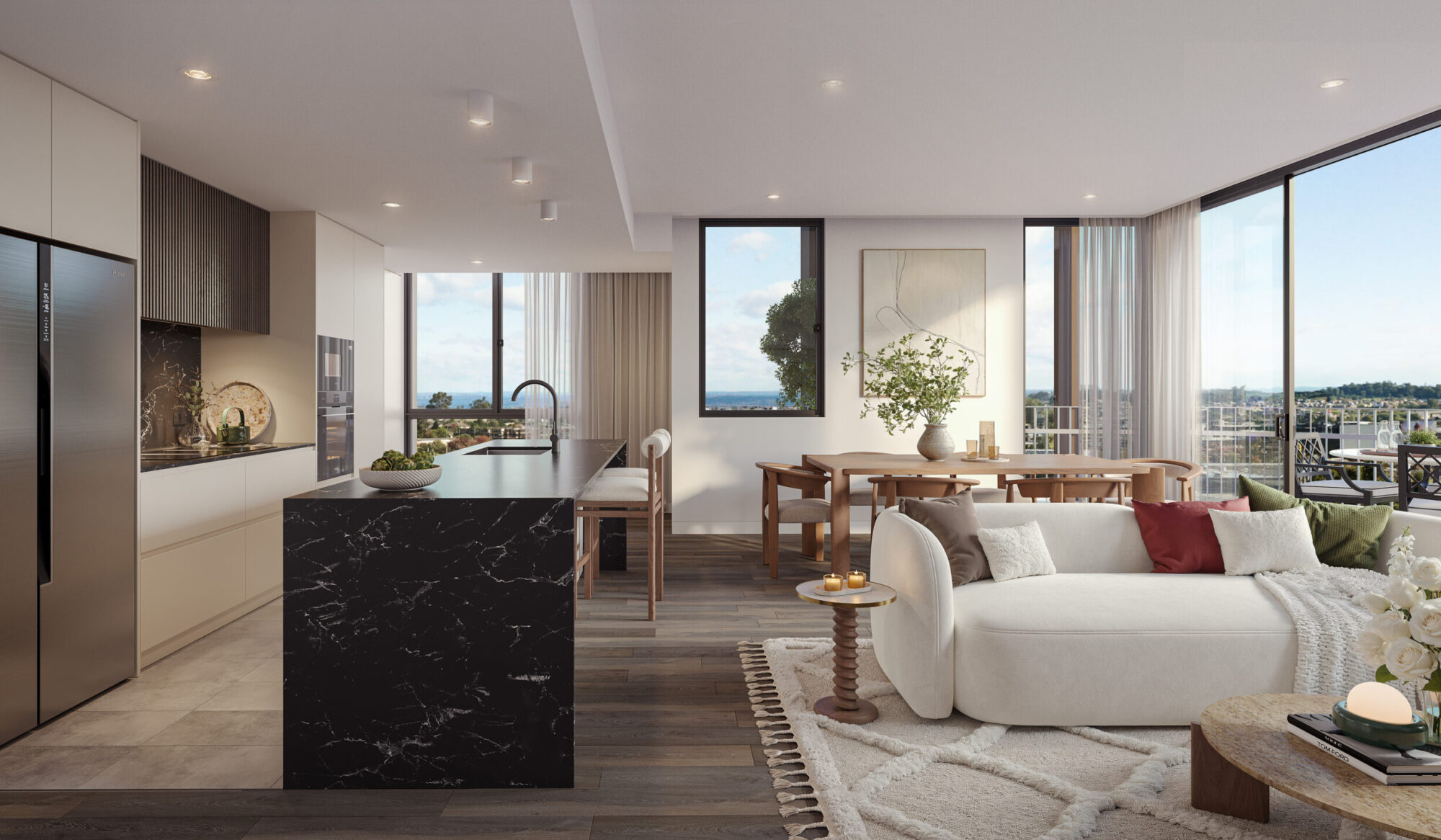 You’ll come home to two thoughtfully designed buildings – Gateway North and Gateway South – offering a mix of 1, 2, and 3-bedroom apartments featuring beautiful designs, stone benchtops, SMEG appliances, secure underground parking, garden courtyards and two rooftop escapes with views over the town.
